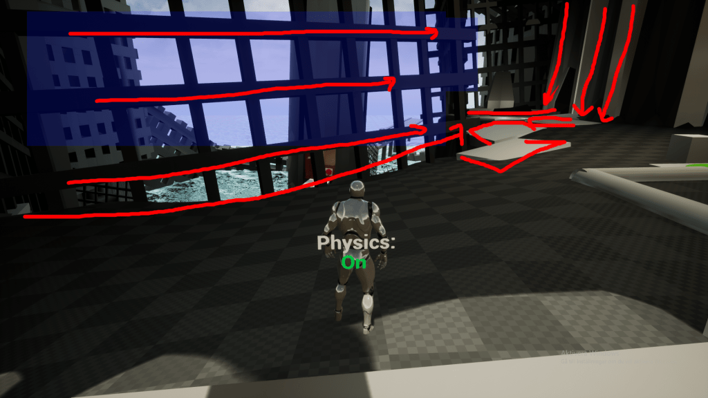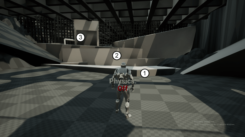 Players then learns how to use the physics component by having to stand on a cube and activate Physics.