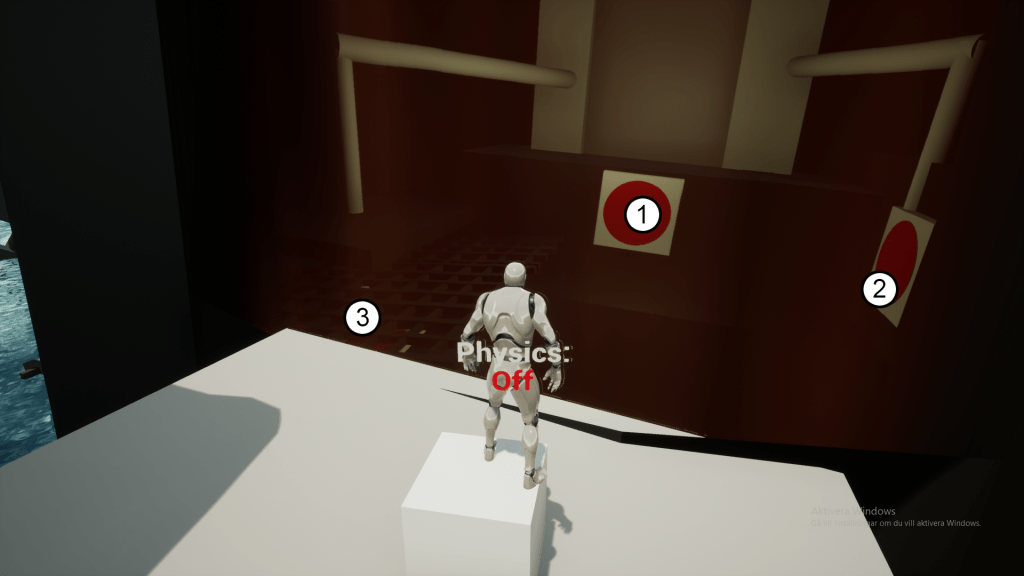 Player repeats learnings from Room 1. But also has to learn to move the spawned cubes and activate the cube physics to get past the challanges.