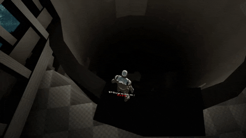 Room 5 introduces a new movement based challange with some added risk and complexity. Player needs to use the skills they have gained from previous rooms to get across the vast open space.